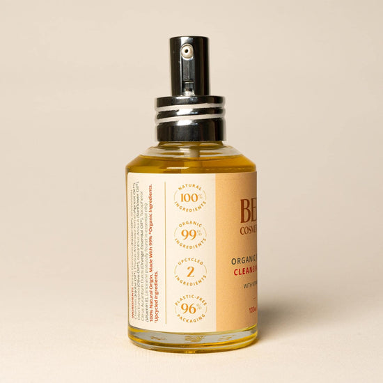 This gentle cleansing oil effectively removes makeup, including waterproof formulas, while nourishing and moisturising the skin. Made with a luxurious blend of organic jojoba, castor, apricot, and olive oils, it softens and hydrates as it cleanses. The refreshing hint of orange essential oil adds a subtle citrus aroma, perfect for a calming skincare routine.